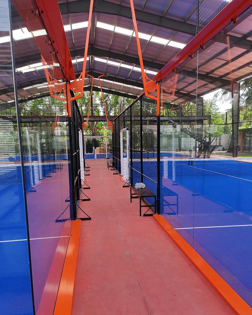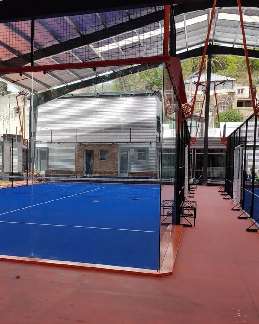 La pista de pádel ideal para clubes y eventos profesionales. Apta para indoor y outdoor, con visión panorámica total, estructura antivibración, vidrios templados, iluminación LED y césped sintético azul premium. Máxima calidad, rendimiento y diseño en cada punto.